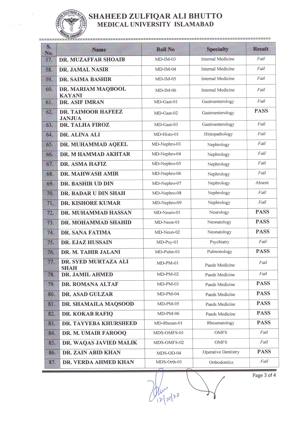 Result Notification of MS,MD,MDS,M.Phil and MSc Final theory Examination Held on 28th & 29th September 2022