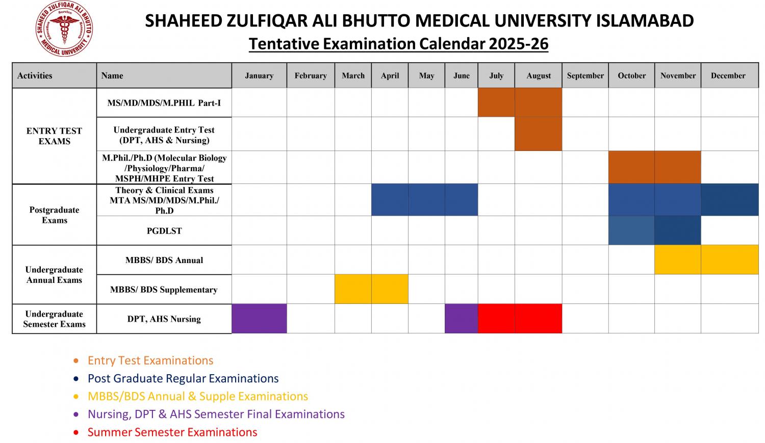 EXAMINATION CALENDAR YEAR 2025