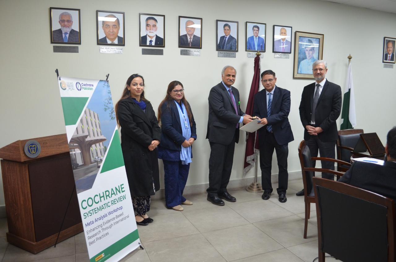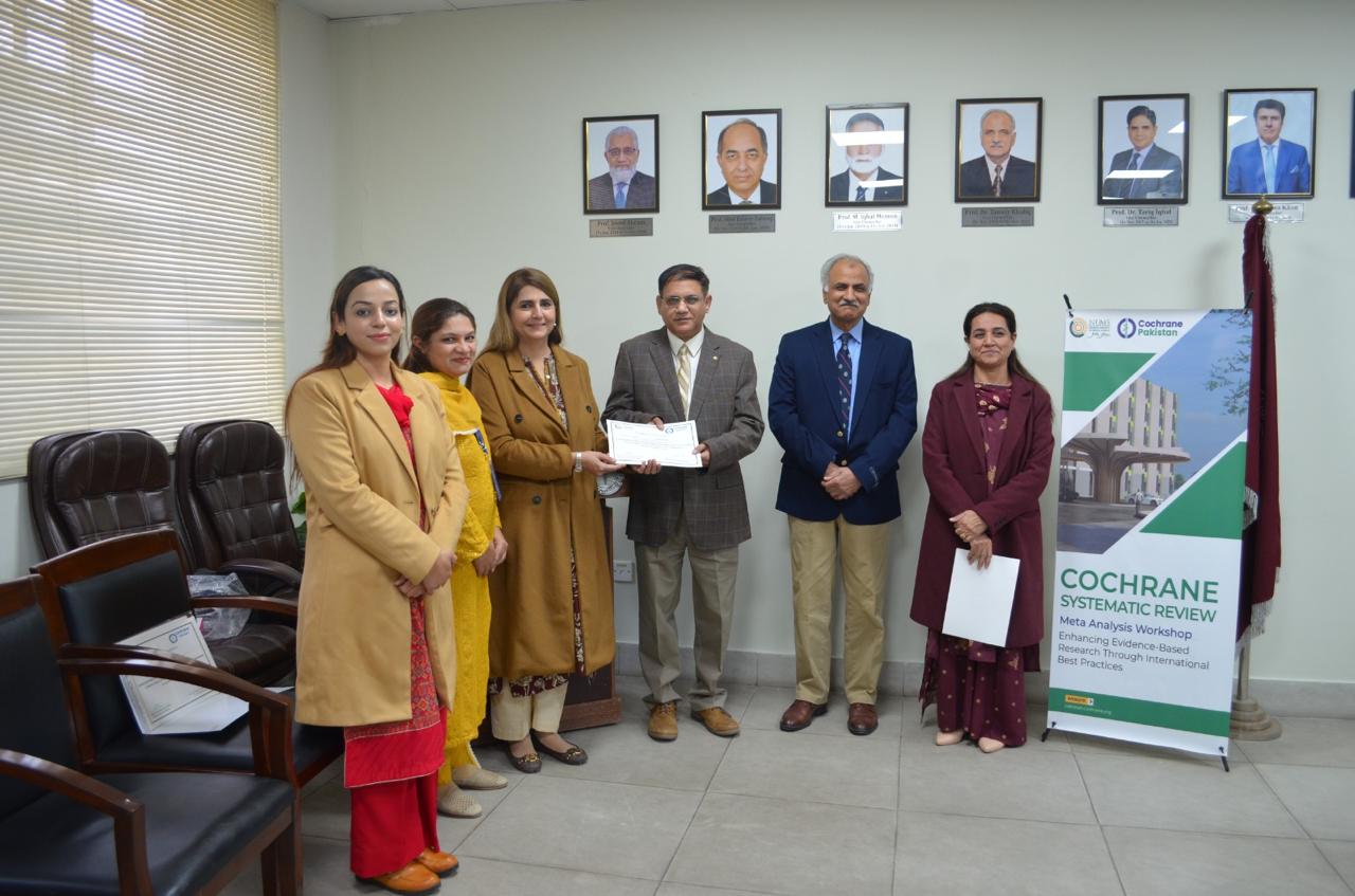 The first, a two-day workshop on Cochrane Systematic Review and Meta-Analysis held on December 4–5, 2025, was a strategic collaboration between SZABMU, Cochrane Pakistan, and the National University of Medical Sciences (NUMS). This tri-institutional partnership was a visionary initiative of Prof. Dr. Tanwir Khaliq, Vice Chancellor of SZABMU, designed to provide high-impact Continuing Professional Development. Coordinated by Dr. Fauzia Haneef and Dr. Ayesha Fazal (Department of Medical Education) and Dr. Syeda Kiran Riaz (Quality Enhancement Cell), the workshop equipped faculty and researchers with hands-on skills in developing research questions, literature searching, data extraction, and using specialized software like RevMan. Maj Gen Prof. Dr. Sohail Sabir and Brig. Sikandar Hayat Khan served as a key facilitator, reinforcing the methodology behind systematic reviews. This training is a direct investment in increasing the number of high-quality, Pakistan-led Cochrane reviews, aiming to address regional health issues and enhance the country's standing in global publication databases.