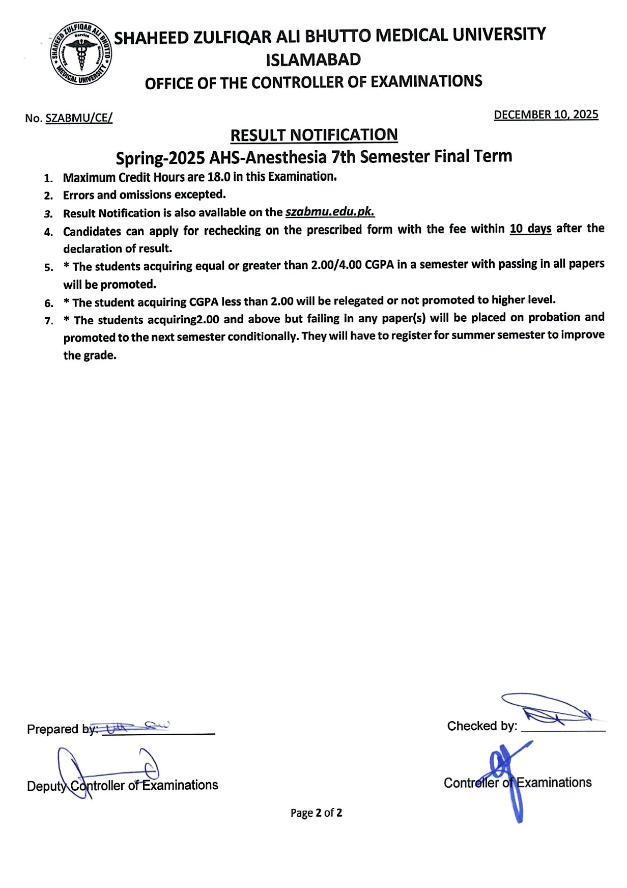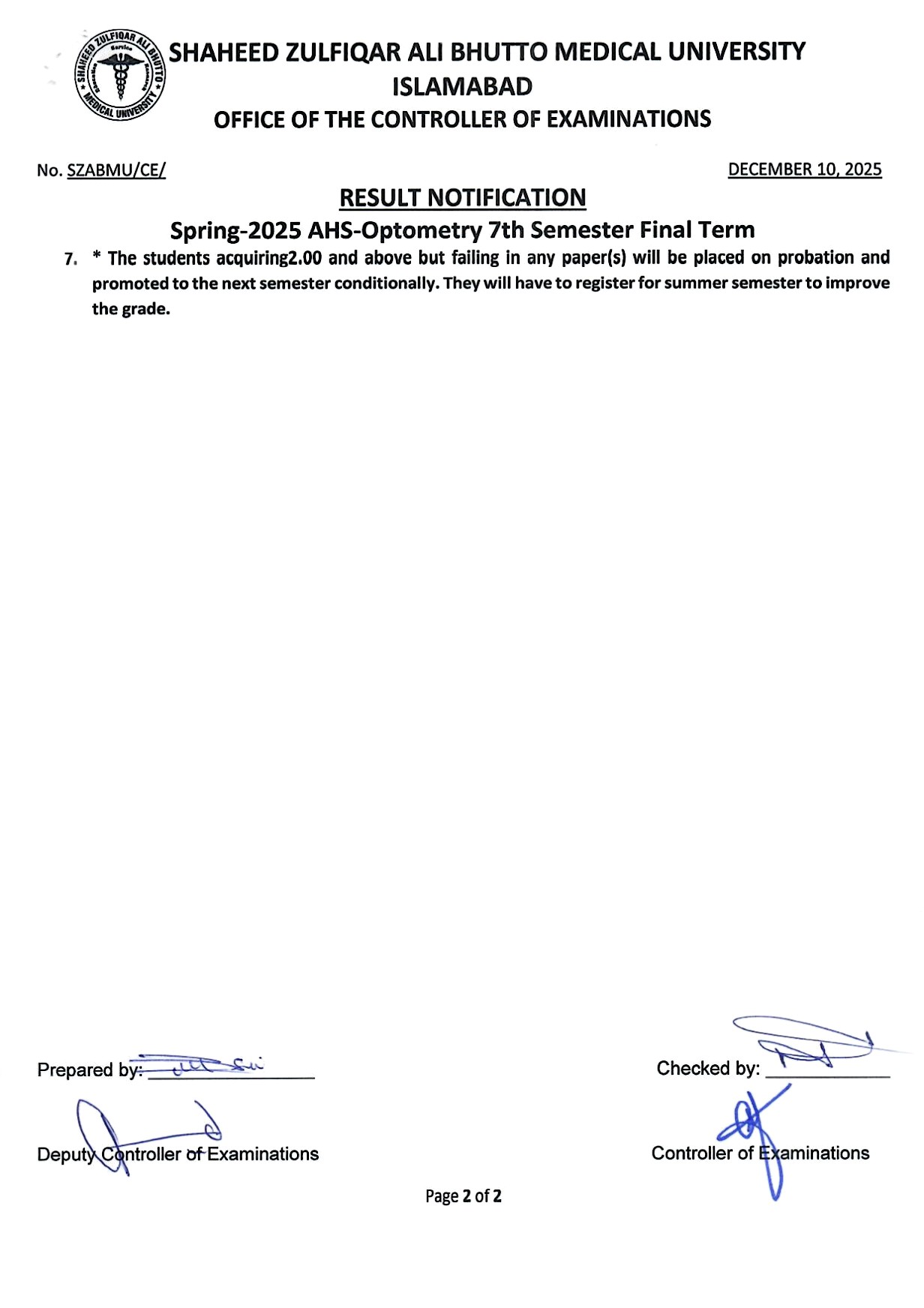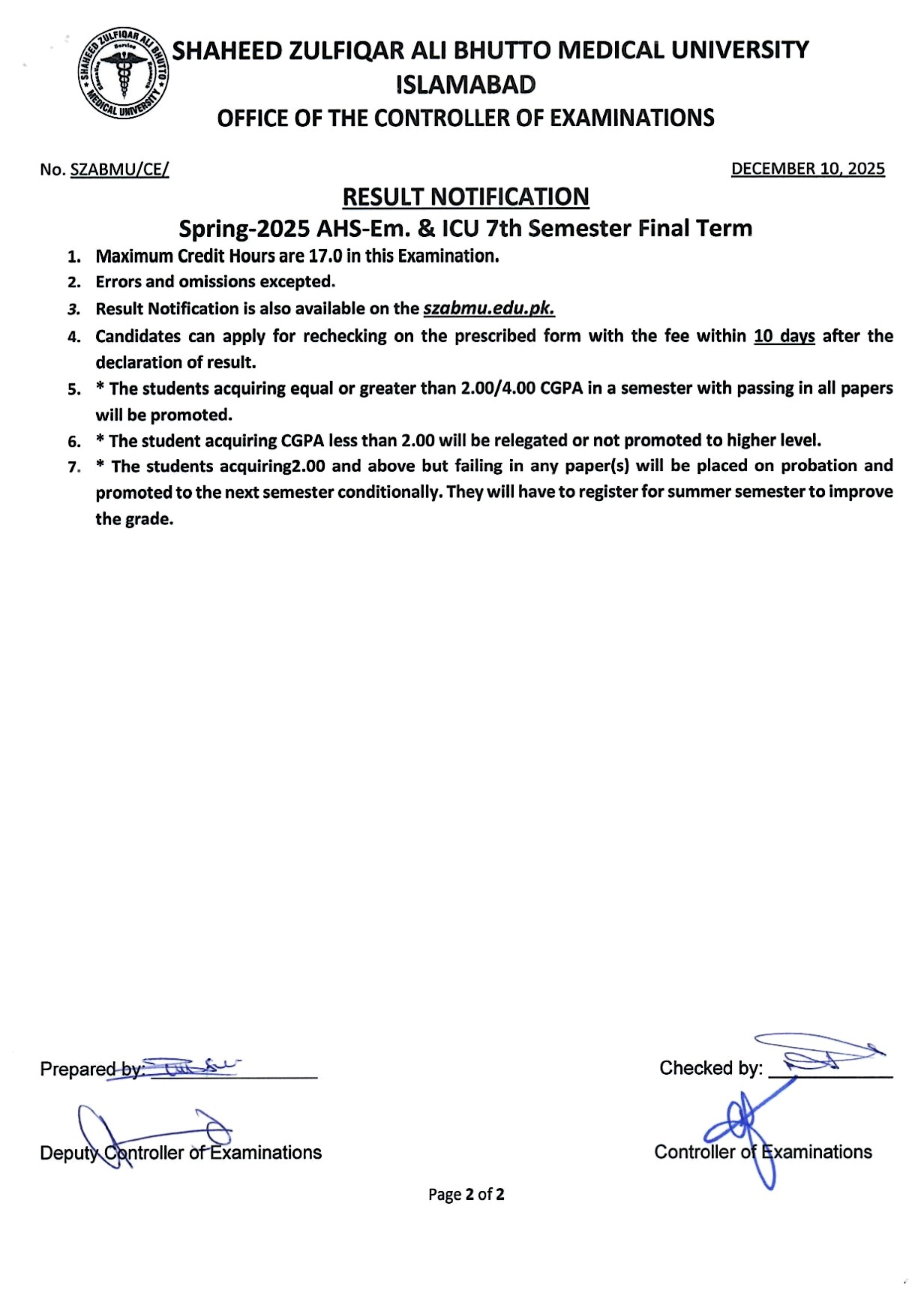 Result Notification - Spring 2025 AHS 7th Semester Final Term