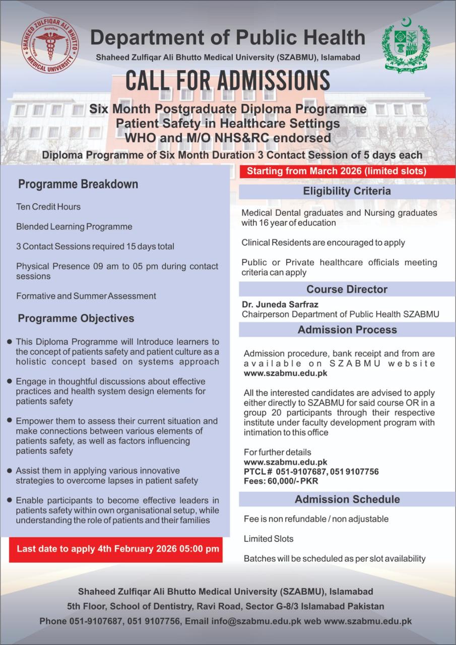 Six Months Postgraduate Diploma Programme in Patient Safety in Healthcare Settings