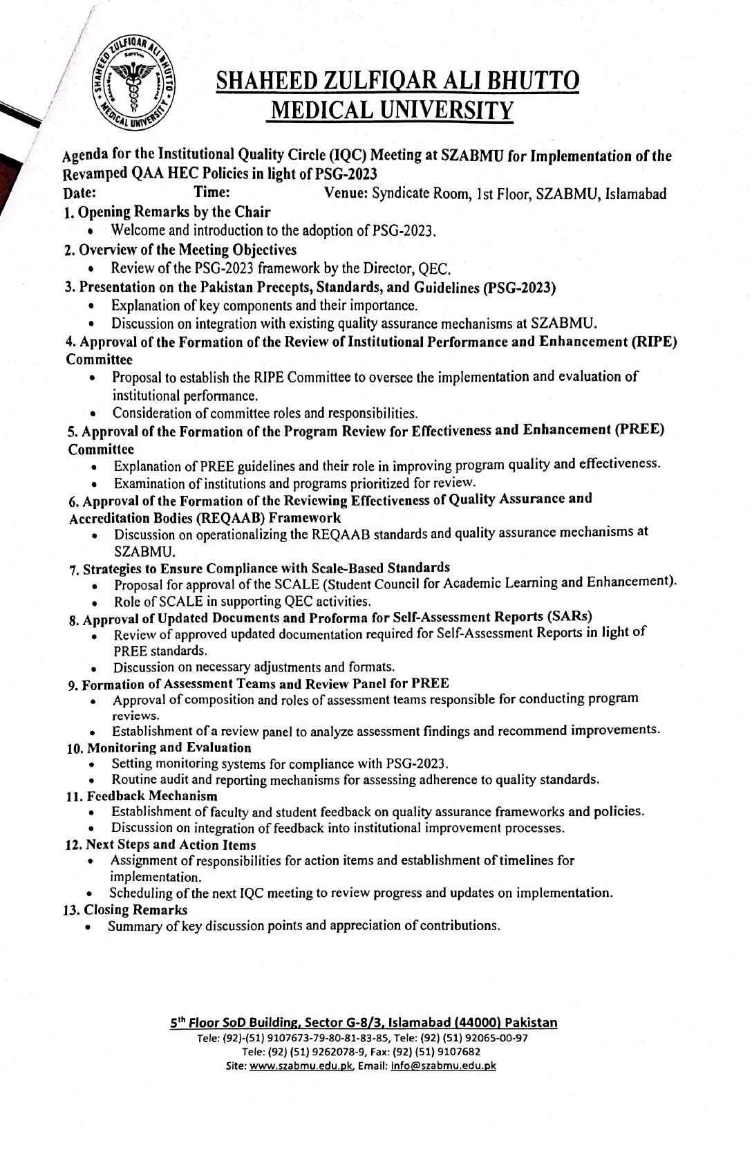 Meeting of Institutional Quality Circle of SZABMU